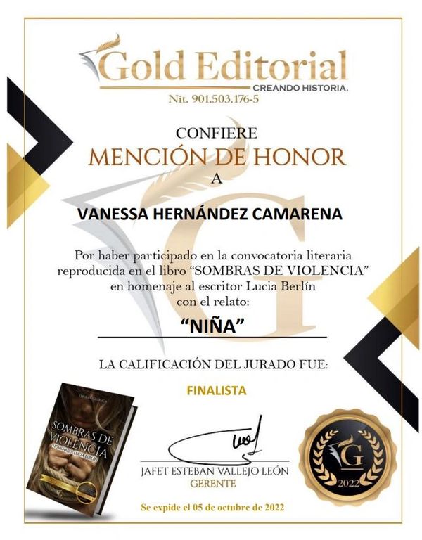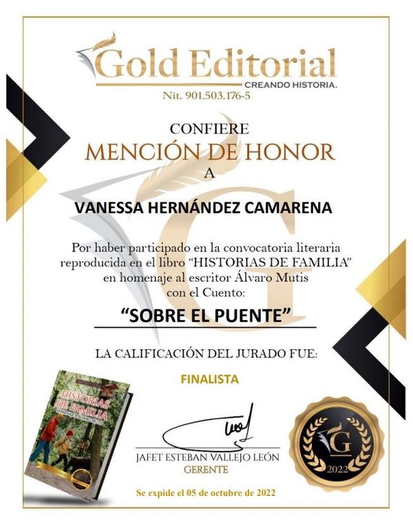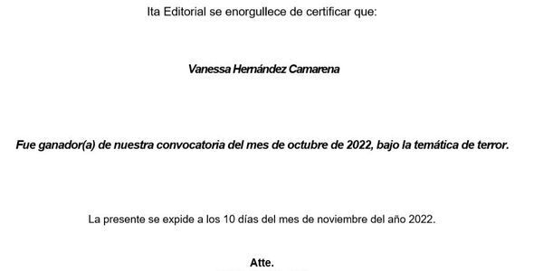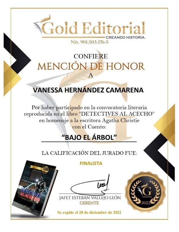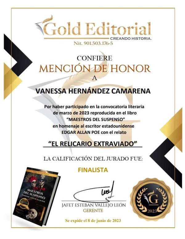 Mención honorífica con el cuento corto: El relicario extraviado.