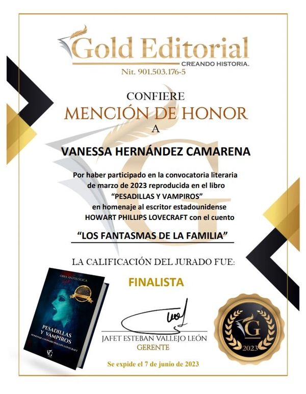 Mención honorífica con el cuento corto: Los fantasmas de la familia.