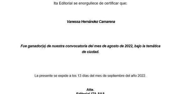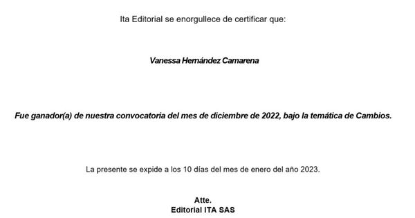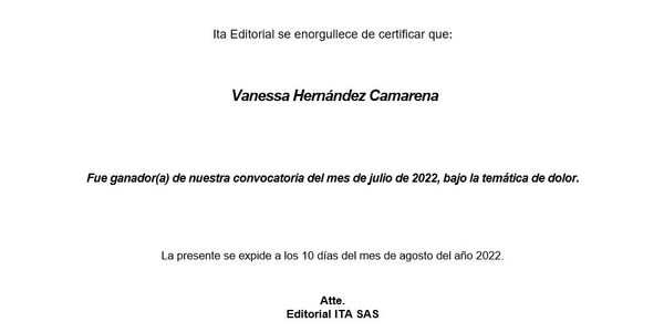 Ganadora de 21 convocatorias de escritura que incluyen textos como cuentos cortos, poemarios y microrrelatos; así como invitada especial en tres convocatorias internacionales. Vanessa Hernández Camarena, joven de 19 años que busca ir más allá de las palabras.