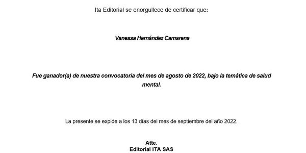 Ganadora de la convocatoria con el cuento corto: La variación de una mente enferma.